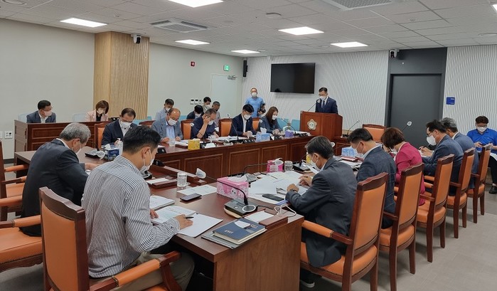 | ▲ 김재식 한국농어촌공사 해남·완도지사장이 지난 18일 해남군의회에서 군의원 전원이 배석한 가운데 2021년 주요성과와 22년 주요사업 추진현황 및 가뭄대책 추진 사업에 대한 군의회의 지원을 요청하고 있다. / 사진=해남지사 제공 |