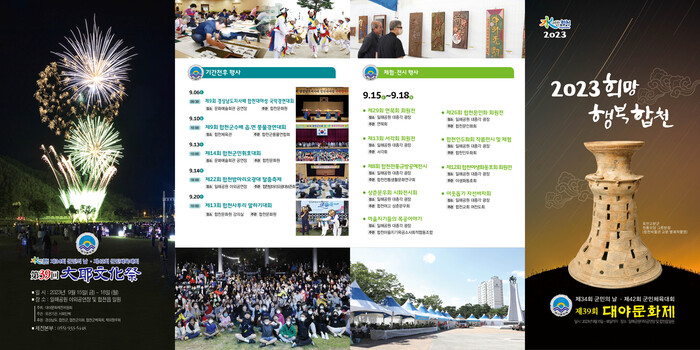 대야문화제전위원회(위원장 김지현)가 주최하고 합천군 유관기관, 사회단체가 주관하는 대야문화제는 향토문화 계승발전 및 군민단결과 화합의 장으로 매년 회를 거듭할수록 군민의 참여와 열기가 고조되고 있으며, 주요행사로는 민속행사와, 체육경기, 전시 및 공연행사로 나뉘어 다채롭게 펼쳐진다.