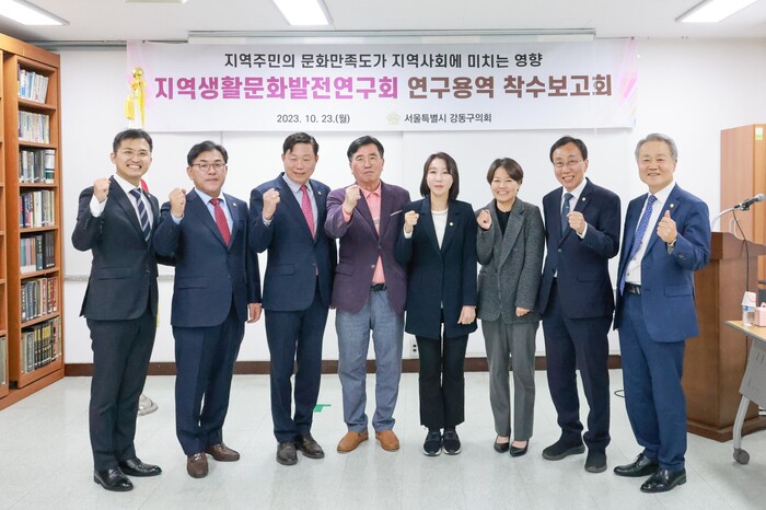[시민일보 = 이대우 기자] 서울 강동구의회 의원 연구단체인 지역생활문화발전연구회가 최근 구의회 세미나실에서 ‘지역주민의 문화만족도가 지역사회에 미치는 영향’을 주제로 연구용역 착수보고회를 개최했다.