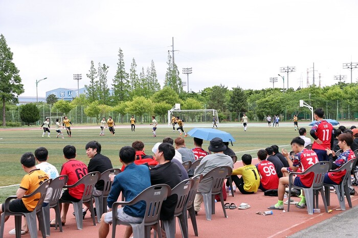 | ▲ 영암군, 지난 28일, (사)함께하는다문화네트워크 목포·영암지부 주관 삼호읍 대불종합체육공원에서 이주민과 선주민 등 300여 명 대상 ‘외국인주민과 함께하는 세계인의날 행사’ 개최 / 사진=축구경기 / 영암군 제공. |