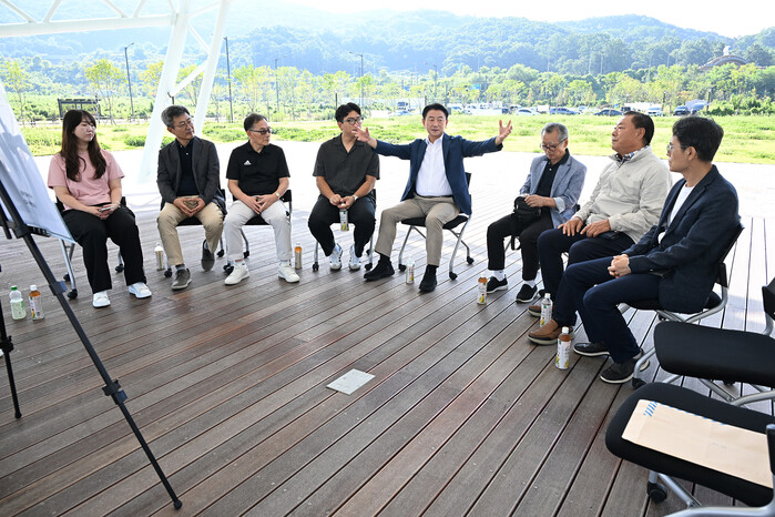 | ▲ 김동근 시장이 9월 3일 복합문화융합단지 현장을 방문해 주민들과 간담회를 하고 있다. |