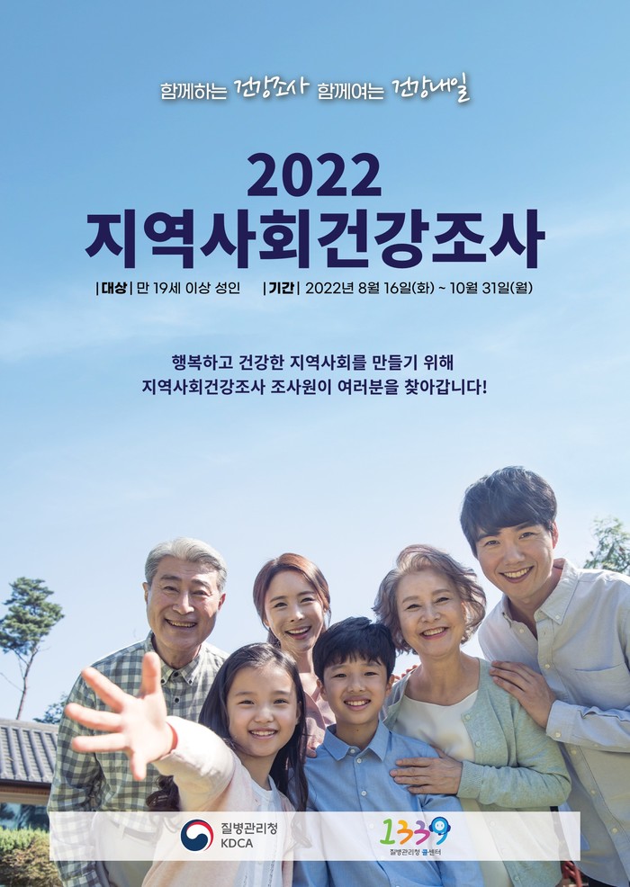 올해 조사는 표본으로 선정된 534가구의 가구원 중 만 19세 이상인 900여명을 대상으로 진행하며, 붉은 유니폼을 입고 조사원증을 패용한 조사원들이 직접 방문해 건강행태, 만성질환 등 총 19개 영역 138개 문항에 대해 조사할 계획이다.