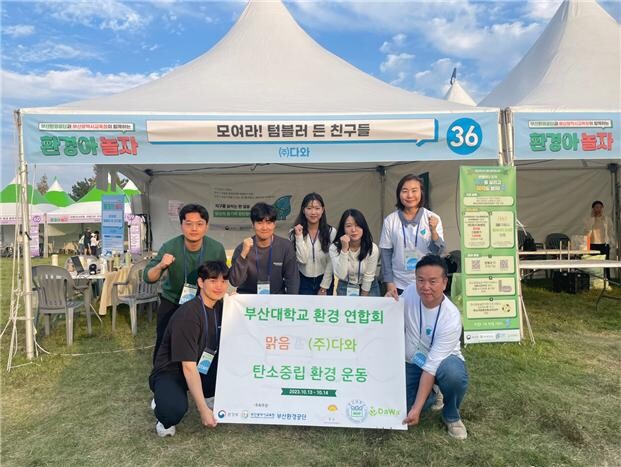 탄소중립실천 데이터 인증 플랫폼 ‘반들이앱’을 운영하는 ㈜다와(대표이사 배병철)가 부산대학교 환경연합회 맑음 (회장 배수연 23, 부산대 한문학과) 와 함께 지난 13일부터 이틀간 국내 최대 환경교육체험전 ‘환경아 놀자’에 참여하였다.