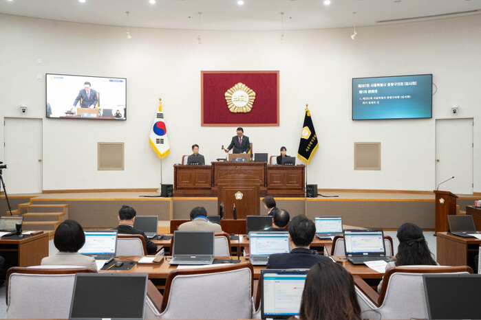 | ▲ 제281회 중랑구의회 임시회 제1차 본회의가 진행되고 있다.(사진=중랑구의회 제공) |