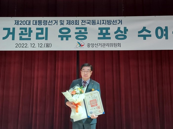 ‘2022 양대선거 공명선거관리 유공 포상’은 올해 실시된 제20대 대통령선거 및 제8회 전국동시지방선거에서 깨끗하고 공정한 선거실현을 통하여 민주주의 발전 등에 기여한 자에게 주어지는 정부포상이다.