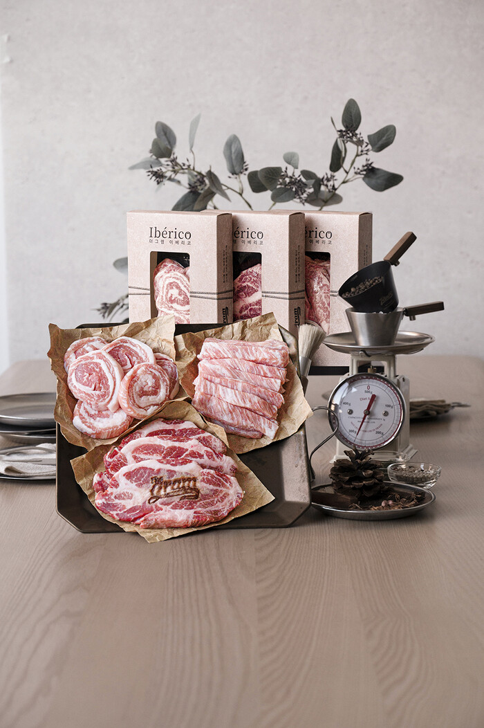 론칭과 함께 선보이는 대표 상품은 ‘더그램 이베리코 선물세트’ 2종(900g, 600g)이다. 그중 더그램 이베리코 선물세트 900g은 이베리코 항정살, 목살, 세크리토벨리 각 300g으로 구성되어 있다. 소량만 얻을 수 있는 귀한 부위인 항정살은 부드러운 식감과 고소한 풍미가 일품이며, 이베리코의 대표 부위인 목살은 소고기 등심을 닮은 마블링으로 감칠맛을 더한다. 눈꽃 삼겹살로 불리는 세크리토벨리 부위는 삼겹살과 항정살의 맛을 동시에 즐길 수 있는 특별한 매력을 지녔다.