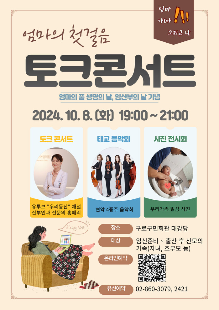 토크콘서트는 오후 7시부터 신청자들에게 사전에 받은 질문과 현장 질문을 바탕으로 임신과 출산에 관한 이야기를 나누는 형식으로 진행될 예정이다.