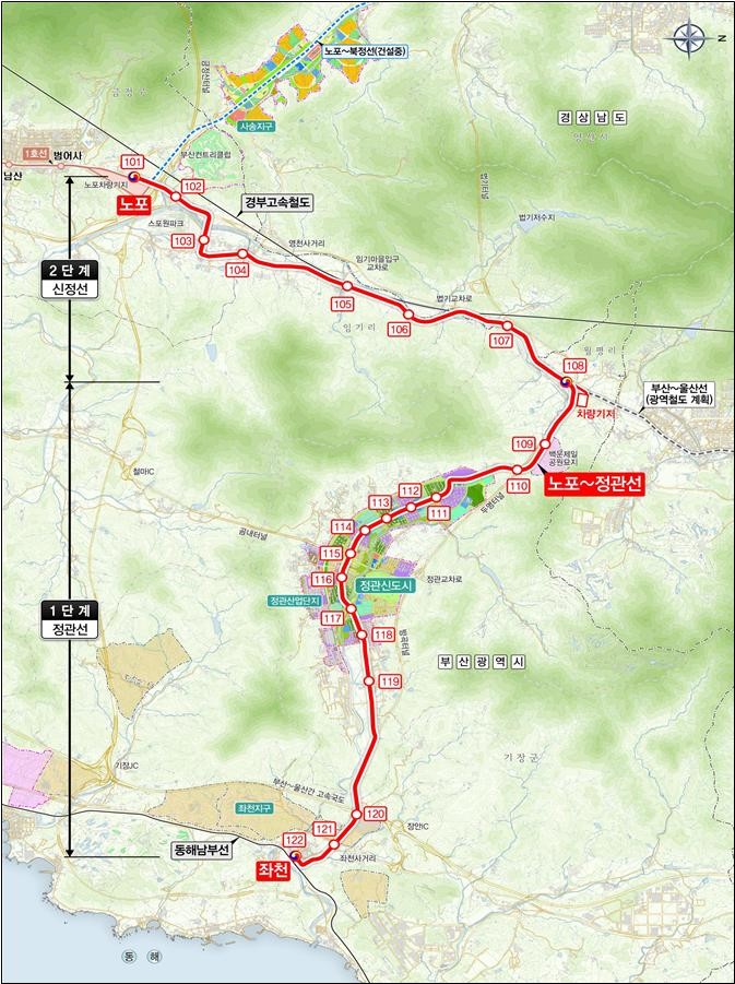 | ▲ 도시철도「노포~정관선」노선도 |