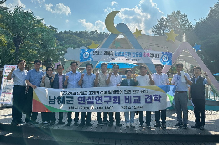 진주시는 지난 7일 남해군의회 정영란 의장을 비롯한 군의원, 관계 공무원 등 18명이 5년 연속 ‘아이 키우기 좋은 도시’ 수상지인 진주시를 방문하여 진양호와 충무공동 물초울공원 등을 둘러보고 아동 놀이문화 및 가족 여가 증진을 위한 정책을 벤치마킹했다고 밝혔다.