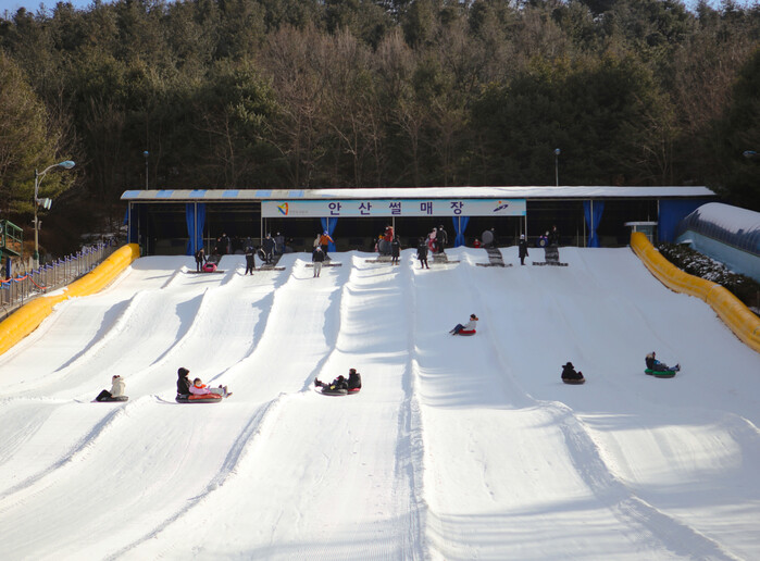 이날 문을 연 안산썰매장은 120m 길이의 슬로프 9개 레인과 60m 길이의 유아용 슬로프 4개 레인을 갖추고 있다. 또한 매점과 물품보관함(100개), 수유시설, 고객휴게실, 탈의실 등 이용객 편의를 위한 다양한 부대시설이 마련됐다.