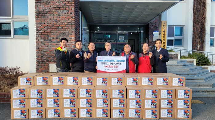 [구미=박병상 기자]경북 구미시는 지난 7일 함께라서좋아요 봉사단과 국빈대반점(총괄단장/대표 최상필)에서 직접 담은 김장 김치 420통(9백만 원 상당)을 전달했다고 밝혔다.