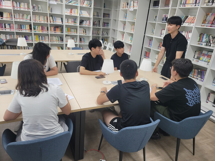 | ▲ 지난 8월 16일(토)과 8월 17일(일), 진도중학교 도서관에서 중학생 22명을 대상으로 「제6기 글로컬⁺ R&E 창의융합 발표토론 프로그램」 개강식과 명사 특강을 개최했다.(출처=전남도교육청) |