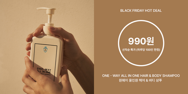 핫딜 특가로 인기 제품인 ▲원웨이 올인원 헤어&바디 샴푸를 단돈 990원에 할인 판매한다.