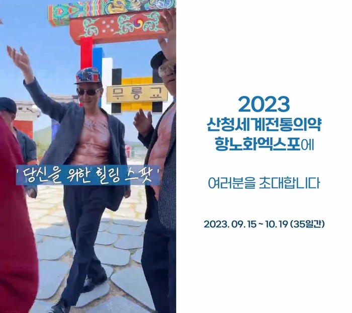 한편 2023 산청항노화엑스포는 보건복지부와 경남도, 산청군이 공동 주최하는 정부 승인 국제행사다. ‘미래의 약속, 세계 속의 전통의약’을 주제로 2023년 9월 15일부터 10월 19일까지 35일간 산청 동의보감촌과 한방의료클러스터 일원에서 개최된다.