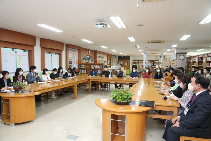 이어 교직원들과 박 교육감은 ‘학생과 교사가 다 같이 행복한 학교 만들기 ’라는 주제로 학생 인권, 고교 학점제, 배움중심수업이라는 세 가지 핵심 어로 소통의 시간을 보냈다.