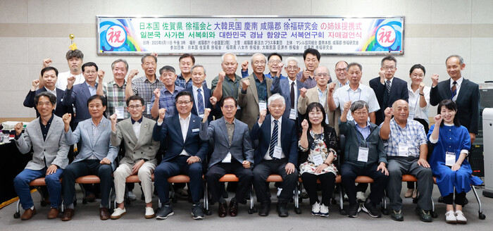 이날 자매결연 협약식에는 함양군 서복연구회와 일본국 사가현 서복회, 거제시 서복회 회원들을 비롯해, 진병영 함양군수, 박용운 군의회의장 등 30여명이 참석해 자매결연을 축하했다.