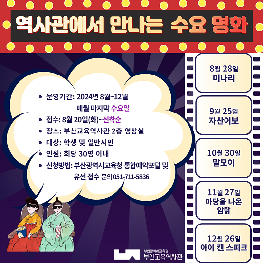관람 신청은 8월 20일 오전 9시부터 부산광역시교육청 통합예약포털을 통해 선착순으로 신청하면 된다. 자세한 내용은 부산교육역사관 홈페이지와 인스타그램에서 확인할 수 있다.