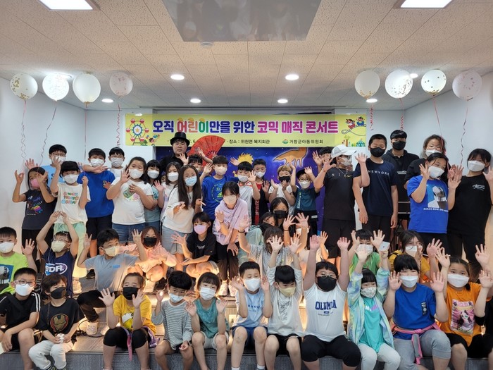 거창군 아동위원회(위원장 김명숙)는 지난 13일 위천면 복지회관에서 3개 면지역 지역아동센터 아동들을 대상으로 마술팀 루팡 매직(대표 이상옥)이 꾸민 ‘오직 어린이들만을 위한 코믹 매직콘서트’를 개최했다.