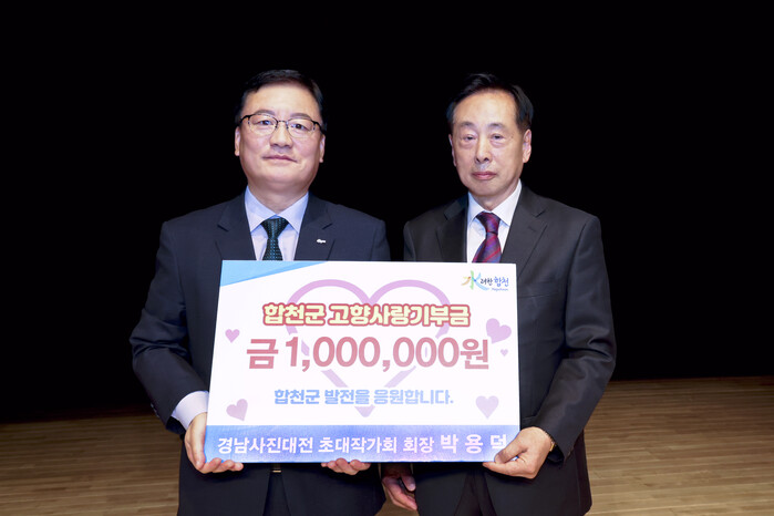 이선기 부군수는 “합천을 위한 따뜻한 마음을 표현해주셔서 깊이 감사드린다”며 “소중한 기부금은 군민 복지와 군 발전을 위해 필요한 곳에 사용하도록 하겠다”고 말했다.
