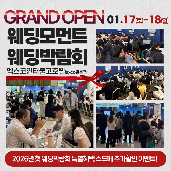 특히 이번 박람회에서는 브랜드 런칭을 기념해 계약 고객을 위한 실질적인 혜택이 마련됐다. 스드메 정찰제로 최대 100만 원 상당의 서비스가 제공되며, 이를 통해 예비부부의 결혼 준비 비용 부담을 낮추는 데 초점을 맞췄다. 박람회에는 대구 지역을 중심으로 다양한 웨딩 관련 업체들이 참여한다.