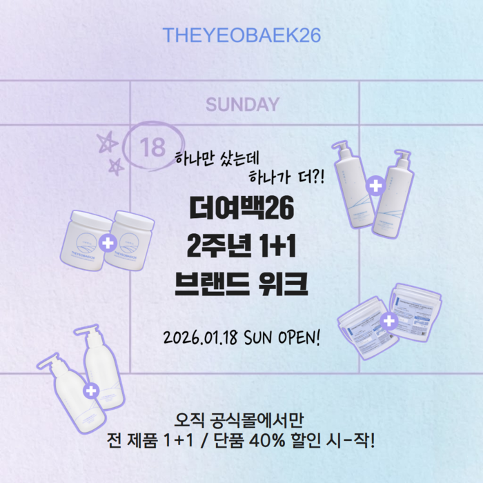 더여백26 관계자는 “이번 2주년 브랜드위크는 단순한 가격 할인 이벤트가 아닌, 브랜드 철학과 제품력을 경험할 수 있도록 기획된 행사”라며 “그동안 더여백26를 신뢰하고 선택해준 고객들에게 실질적인 혜택으로 보답하고자 1+1과 단품 할인이라는 파격적인 조건을 마련했다”고 전했다.