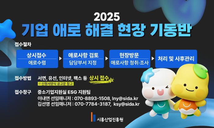 | ▲ 시흥산업진흥원 관내 기업의 어려움을 현장에서 직접 상담.지원하는 ‘기업 애로 해결 현장 기동반 운영 안내 포스터 /자료제공=시흥산업진흥원 |