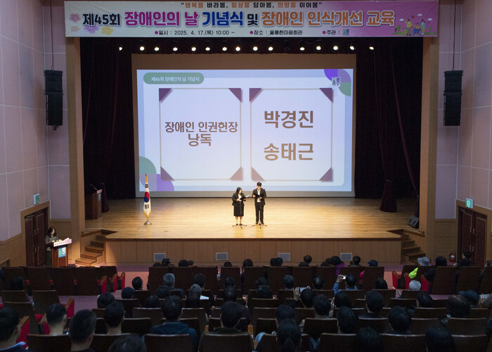 기념식은 장애인 인권 헌장을 시작으로 유공자 표창, 기념사 등의 순서로 진행됐으며 특히, 올해는 기념식에 이어 공무원과 주민, 민간단체를 대상으로 장애인 인식 개선 교육도 실시했다.