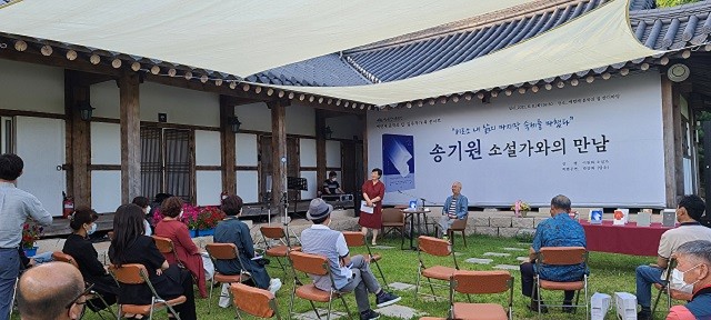 | ▲ 해남읍 연동리 소재 백련재 문학의 집 송기원작가 북콘서트 행사 모습 / 사진=해남군 제공 |