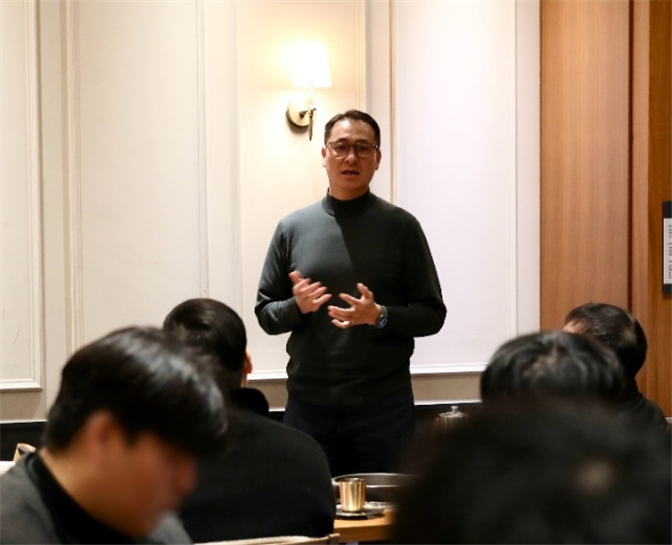 | ▲ 송호섭 bhc치킨 대표이사가 간담회에 참석한 수도권 가맹점주들에게 향후 운영 계획 등을 전하고 있다. |