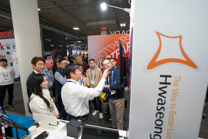| ▲ 올해 1월 CES에서 화성특례시 기업 전시부스의 제품에 외국인 투자자들이 관심을 보이고 있다 /사진제공=화성특례시 |