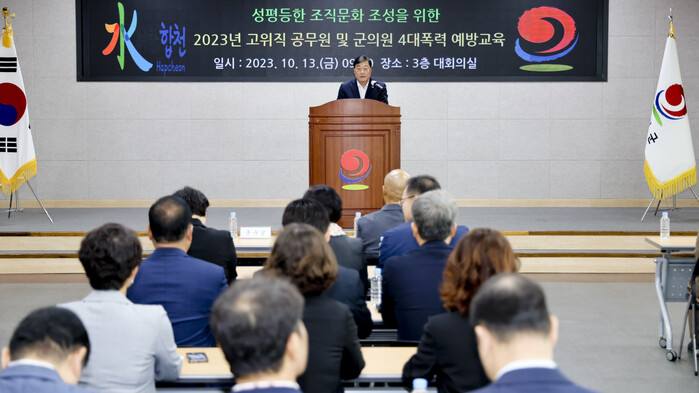 한편 합천군은 전 직원(공무원, 공무직, 기간제 등)에 대해 사이버 교육을 통한 4대 폭력 예방교육을 시행하고 있으며 전 직원의 성인지 감수성 향상을 위해 적극 노력하고 있다.
