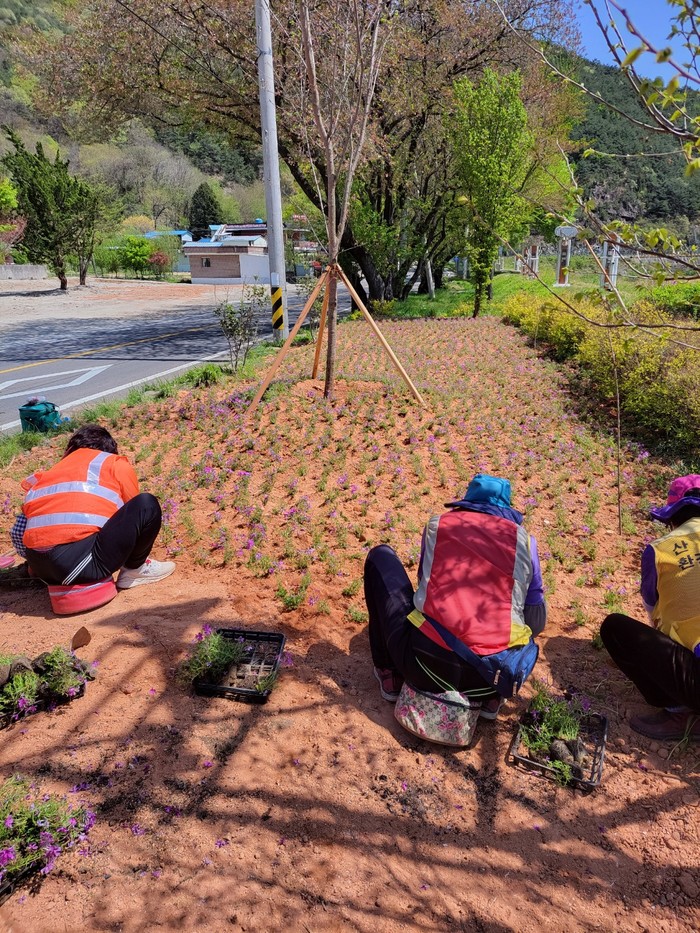 창촌리 구만마을 앞 유휴지를 활용해 약 2000㎡ 부지에 성토작업을 마치고 벚꽃나무 9그루, 꽃잔디 1만5000본을 식재해 지역주민과 방문객에 볼거리를 제공할 예정이다.