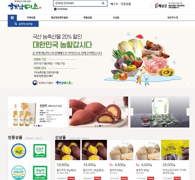 | ▲ 해남군 직영 온라인 쇼핑몰 '해남미소' 홈페이지 이미지 / 해남군 제공 |