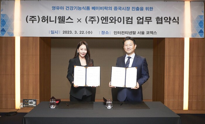 [시민일보 = 여영준 기자] 건강기능식품 전문기업인 허니웰스는 최근 급성장중인 중국의 영유아 건강기능식품 시장 진출을 위해 중국 마케팅 및 유통 전문기업인 엔와이컴과 업무 협약식을 체결했다고 23일 밝혔다.