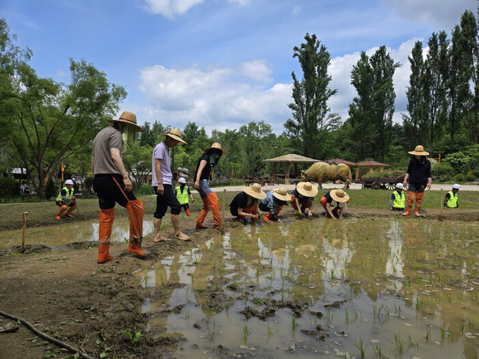 체험에 참여한 아이들은 논에 직접 들어가 미끄러운 흙의 촉감을 느끼고, 직원들과 함께 전통 방식으로 모를 심으며 농경문화를 체험하는 소중한 시간을 가졌다. 공원을 산책하던 주민들은 모내기 현장을 지켜보며 농사를 지었던 추억을 떠올리기도 했다.