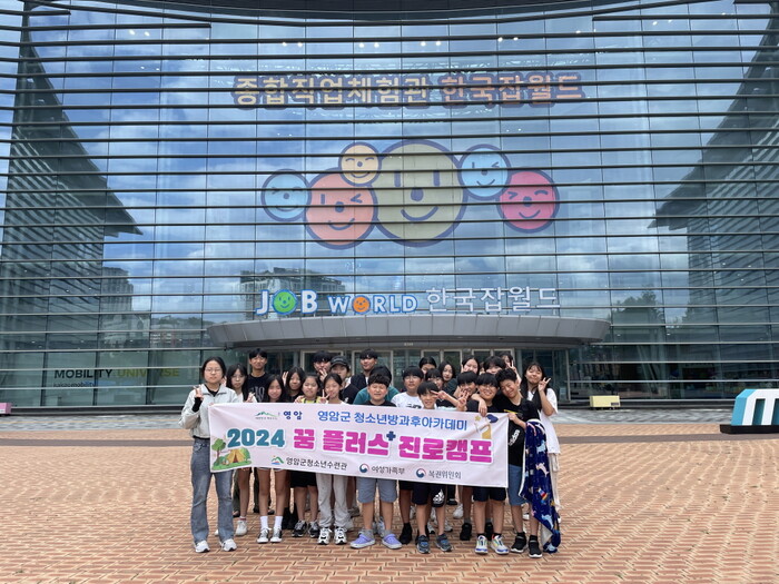 | ▲ 영암군방과후아카데미 청소년, 2024 꿈 플러스 진로캠프 참여 기념촬영 / 영암군 제공 |