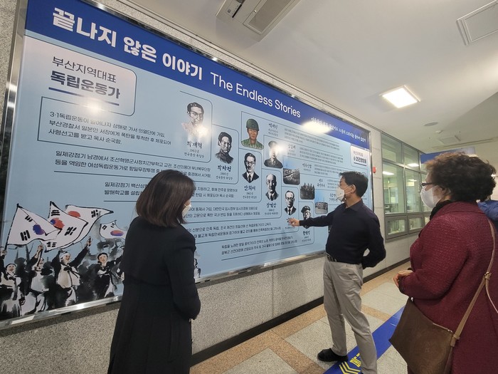 보훈홍보판(끝없는 이야기:The Endless Stories)은 부산의 대표 독립유공자(박재혁, 박차정, 안희제, 장건상, 김법린, 한형석)와 6·25전쟁영웅(백재덕, 김갑태, 백두산함, 영도유격부대, 육군헌병7기학도병, UN군6·25참전용사)들을 소개하고 있다.