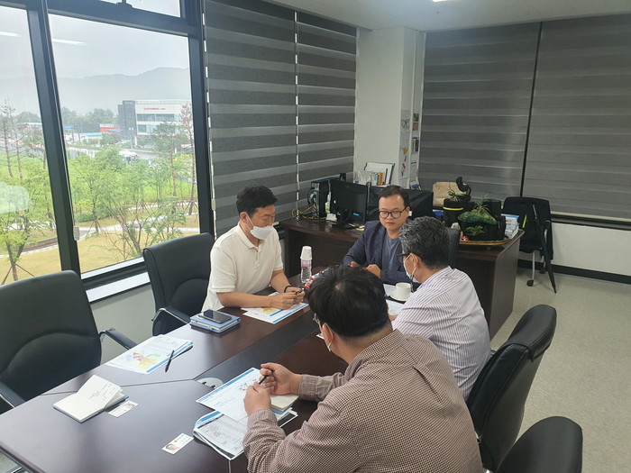 | ▲임창휘 의원이 경기주택도시공사 담당자들과 광주역세권 도시개발사업 준공 및 접수된 민원 해결방안에 대해 이야기를 나누고 있다. (사진제공=경기도의회) |