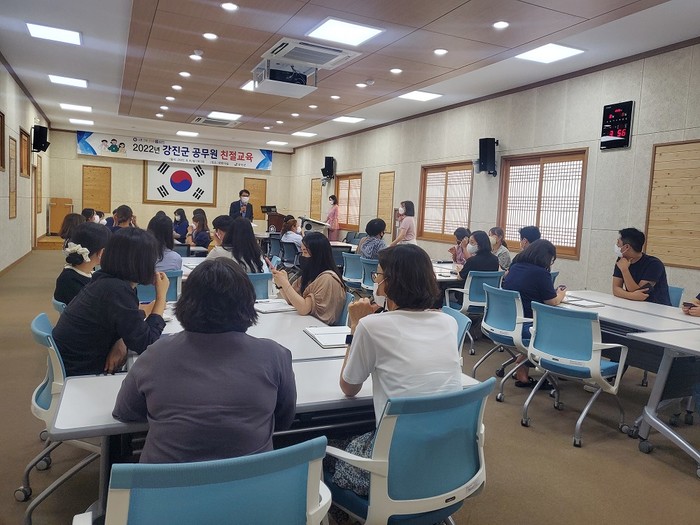 이준범 기획홍보실장은 “강진군 공무원 개개인의 친절이 군정 전반에 대한 신뢰성을 좌우하는 만큼 이번 교육을 통해 공무원 친절도를 높이기 위해 최선을 다하겠다.”고 말했다.