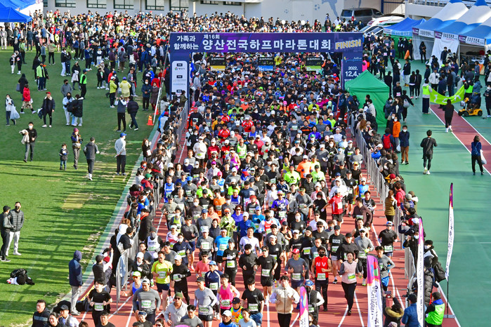 [양산=최성일 기자] 가족과 함께하는 제16회 양산전국하프마라톤대회가지난 4일 양산종합운동장에서 열렸다.