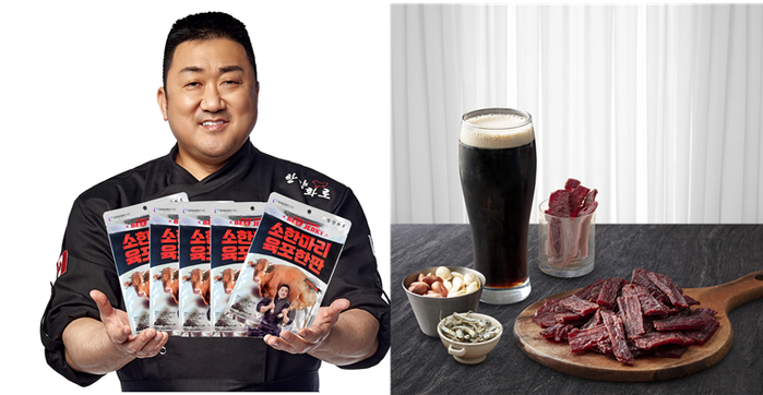 영화배우 마동석이 광고모델인 소고기 화로구이 전문 프랜차이즈 '한양화로'는 ‘소한마리 육포한판’을 출시했다고 밝혔다.