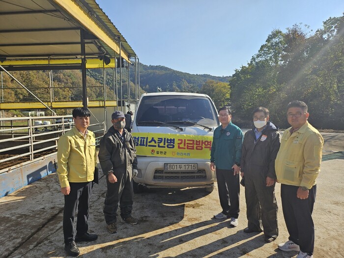 합천군은 지난 22일부터 합천축협 공동방제단 12개반을 동원해 관내 소사육농가 1,443호에 대해 축사 주변 및 흡혈곤충 서식지 등에 연무 방제를 실시하고 있다. 신속한 대응을 위해 럼피스킨병 방역대책상황실을 운영하며 의심축 신고 및 임상예찰도 강화하고 있다.