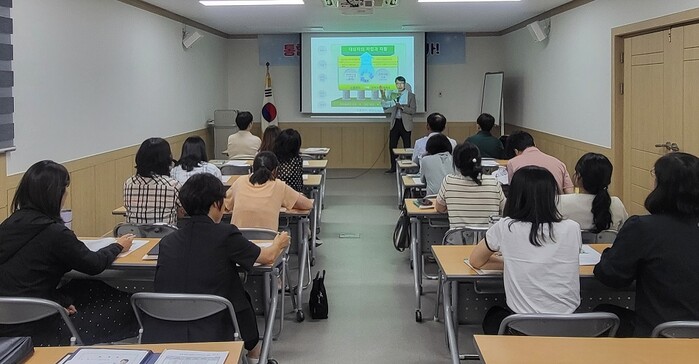 | ▲ 통합사례관리 직무역량 키움과정 교육을 하고 있다. |