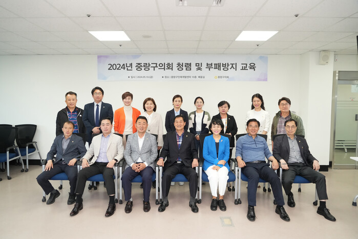 [시민일보 = 여영준 기자] 서울 중랑구의회(의장 조성연)가 최근 중랑구 인재개발센터에서 2024년 청렴 및 부패 방지 교육을 중랑구의회 의원과 의회사무국 직원을 대상으로 실시했다.