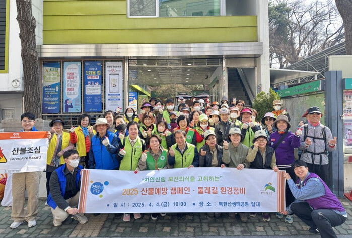 참여자들은 북한산 등산로에 산불예방 현수막을 게재하고 등산객들에게 산불예방 핀버튼을 나누어주며 홍보활동을 펼쳤다. 또한 둘레길 쓰레기 줍기와 빗물받이 및 침사지 점검 등 환경정비도 병행했다.