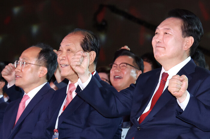 이런 가운데 윤 대통령은 2년 연속 전당대회에 참석해 "우리 당과 당원 동지 여러분과 저는 지금까지 하나였고, 앞으로도 하나일 것"이라고 강조했다. 또 대통령으로서 1호 당원으로 당을 뒷받침하겠다고 밝히는 등 당정 갈등설에 선을 그었다.