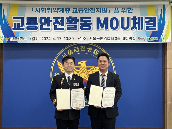 서울 금천경찰서(이종서 경찰서장)와 사단법인 좋은변화(이사장 홍민기)는 지난 4월 17일 금천구 지역 내 폐지수거 어르신 교통안전 지원을 위한 업무협약을 체결하였다고 밝혔다.