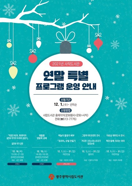 | ▲ 광주광역시 사직도서관 연말 특별 프로그램 운영 포스터 / 광주광역시 제공 |