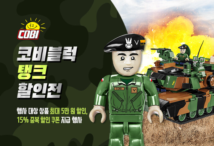 밀리터리 키덜트 블럭으로 유명한 코비 온라인 공식 스토어(네이버 스마트 스토어)에서 최대 15% 탱크 할인 기획전을 진행한다고 16일 밝혔다.