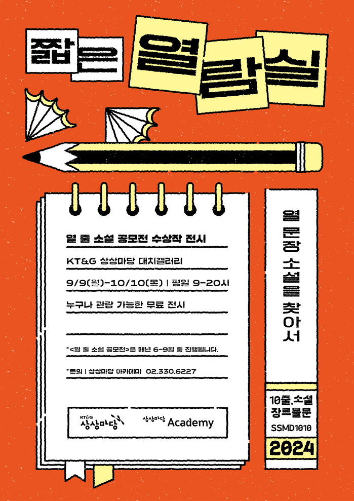 [시민일보 = 문민호 기자] KT&G 상상마당이 문학 저변 확대를 위해 개최해 온 ‘열 줄 소설 공모전’의 본선 진출작과 대상 수상작을 한자리에 모은 전시회 ‘짧은 열람실’을 10월 10일까지 KT&G 상상마당 대치갤러리에서 개최한다.